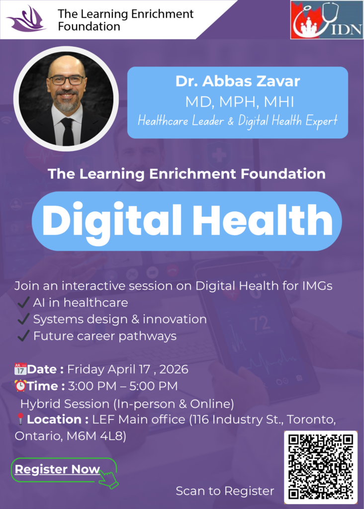 We are excited to invite you to an insightful session hosted by The Learning Enrichment Foundation (LEF), featuring Dr. Abbas Zavar (MD, MPH, MHI) — a respected Healthcare Leader and Digital Health Expert.